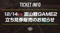 12/13(土)-14(日) 富山戦 立ち見券販売のお知らせ