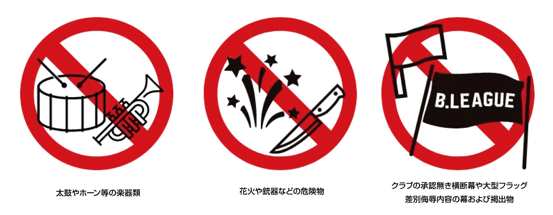 Bリーグで定められている、全会場共通のルール&マナーが適用されます。詳しくはこちらをご確認ください。