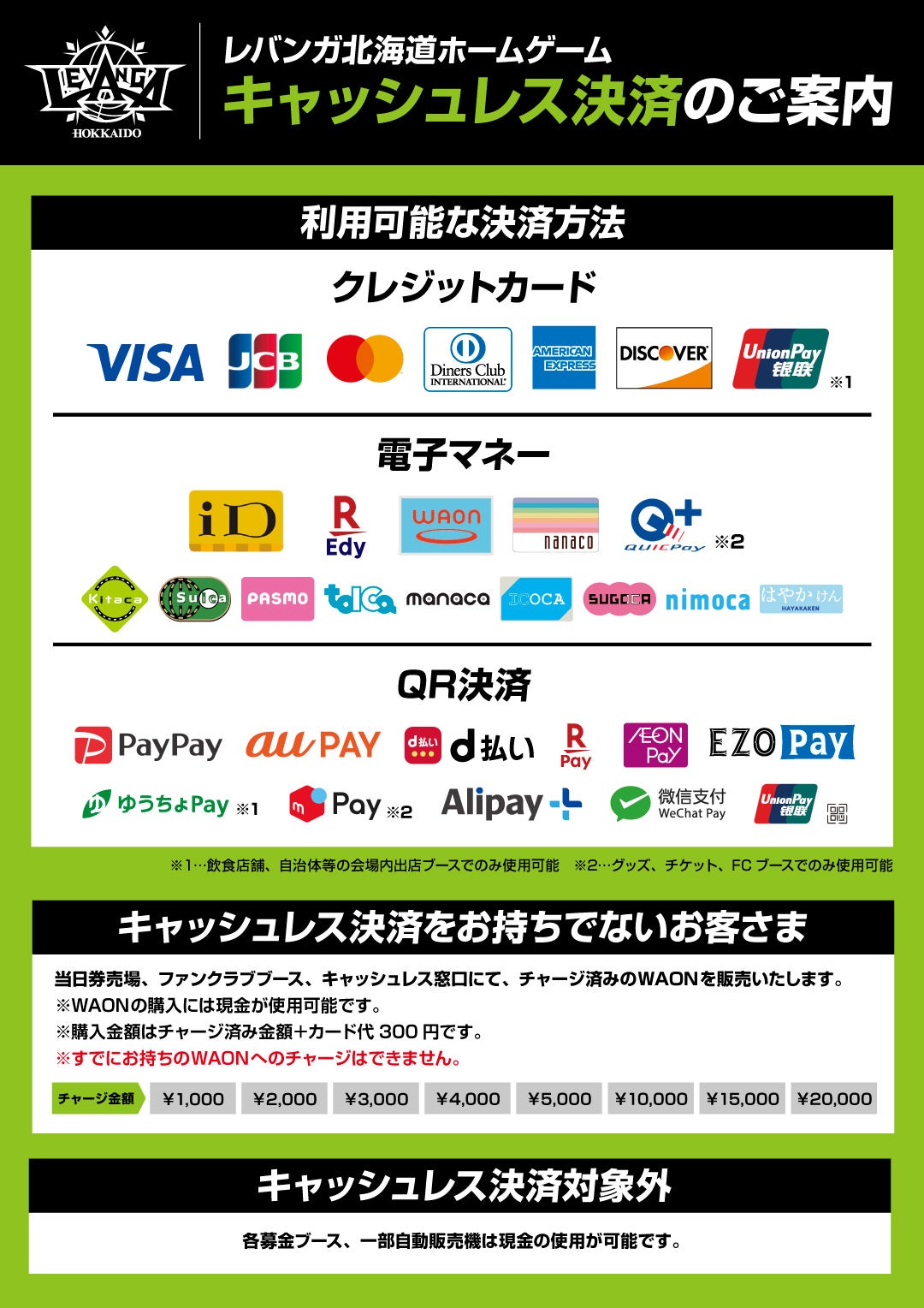 2025-26シーズンより、レバンガ北海道主管のホームゲーム会場内はキャッシュレス化いたしました。