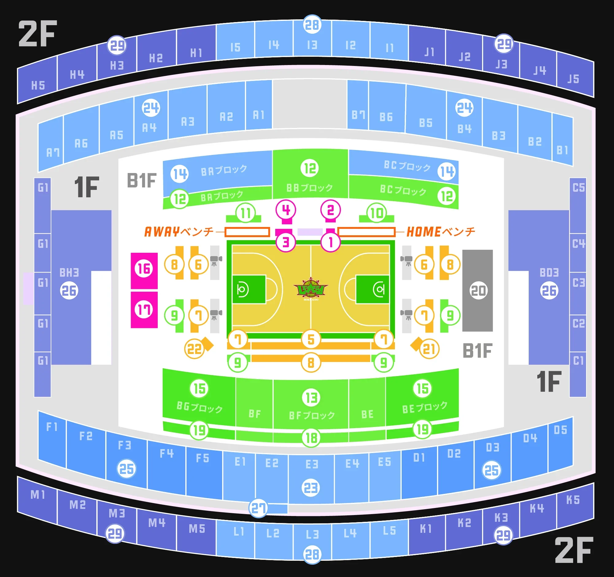 ⑧-⑨コートサイド・エンド後列各ブロック