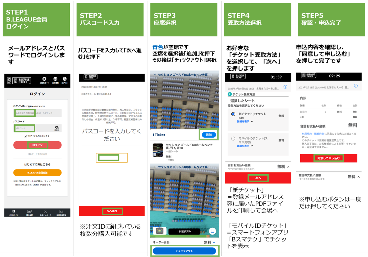 お手元のヴォレアス北海道観戦チケットをご確認の上、本ページ下にあるチケットページより申込をお願いします。