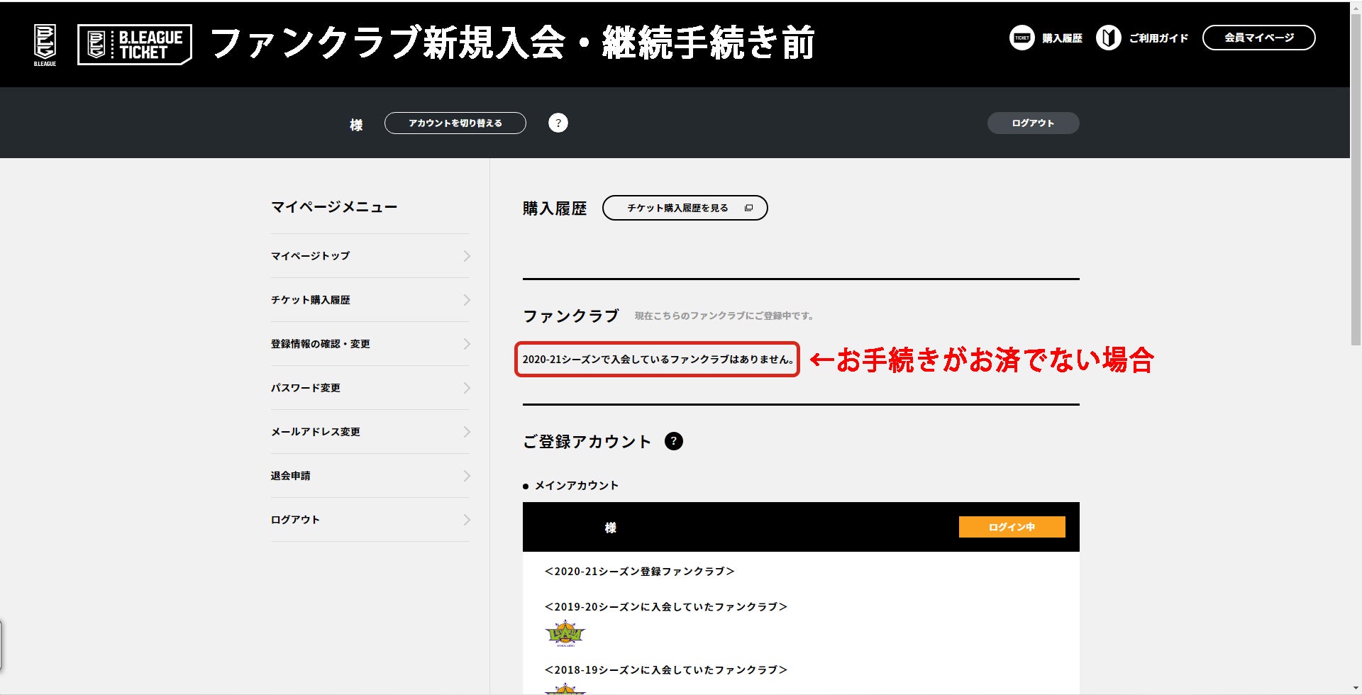 ログインができない、ログインができても2020-21シーズンの欄に情報が出ていない等のご不明点がある場合は、