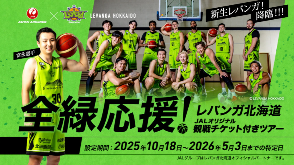 このたび、りそなグループ B.LEAGUE 2025ー26シーズンのレバンガ北海道ホームゲーム会場に試合観戦にお越しいただいたファン・ブースターの皆さまに、オフィシャルパートナー「日本航空株式会社 (JAL)」様 のマイルをプレゼントする企画を実施いたします。