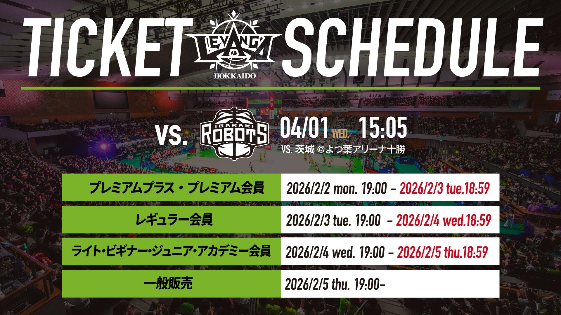 4/1(水)茨城戦@よつ葉アリーナ十勝 チケット販売概要