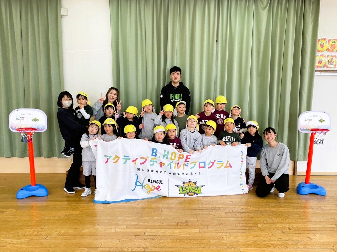 レバンガ北海道は、B.LEAGUEの社会的責任活動「B.Hope アクティブチャイルドプログラム」の一環として、札幌市内の幼稚園を訪問し、子どもたちに体を動かす楽しさを届ける「アクティブチャイルドプログラム(ACP)」を実施しました。