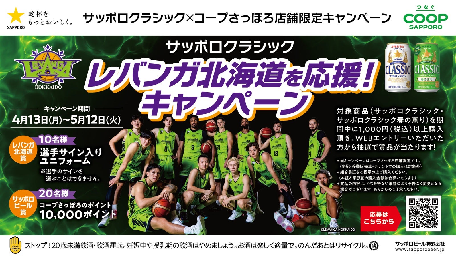 【サッポロクラシック×コープさっぽろ店舗限定キャンペーン】 サッポロクラシック レバンガ北海道を応援!キャンペーン