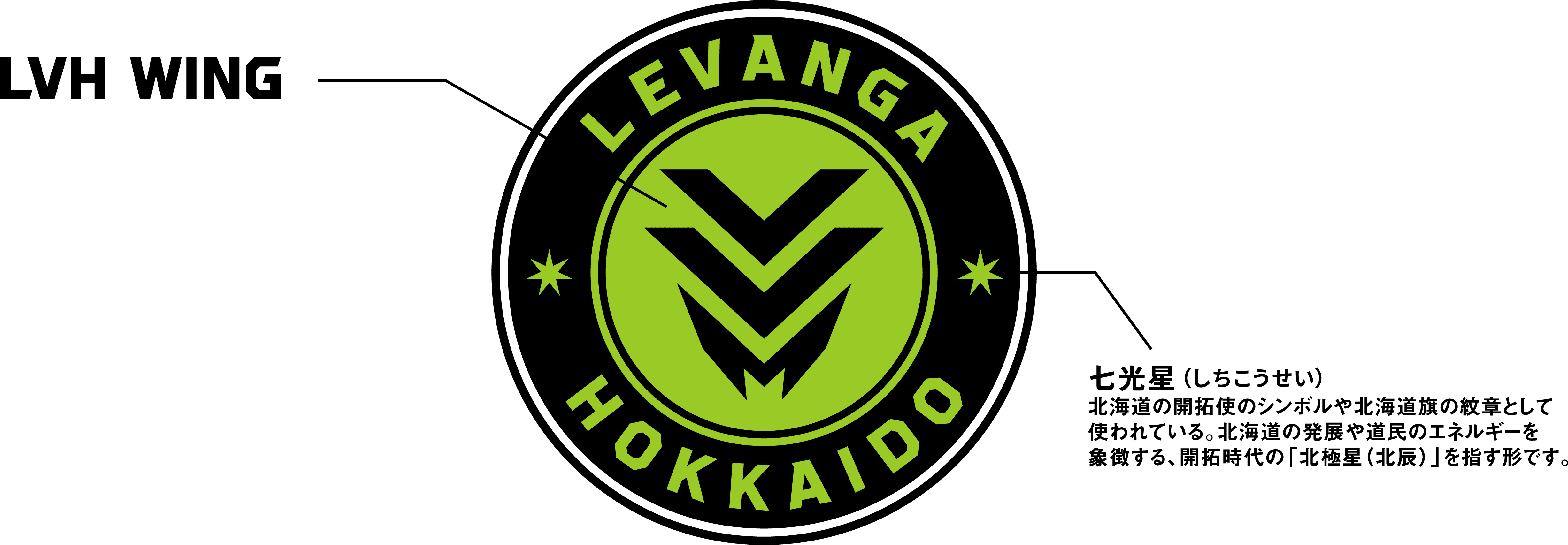 中央の三本のシンボルは「LVH(レバンガ北海道)」を表すだけでなく、