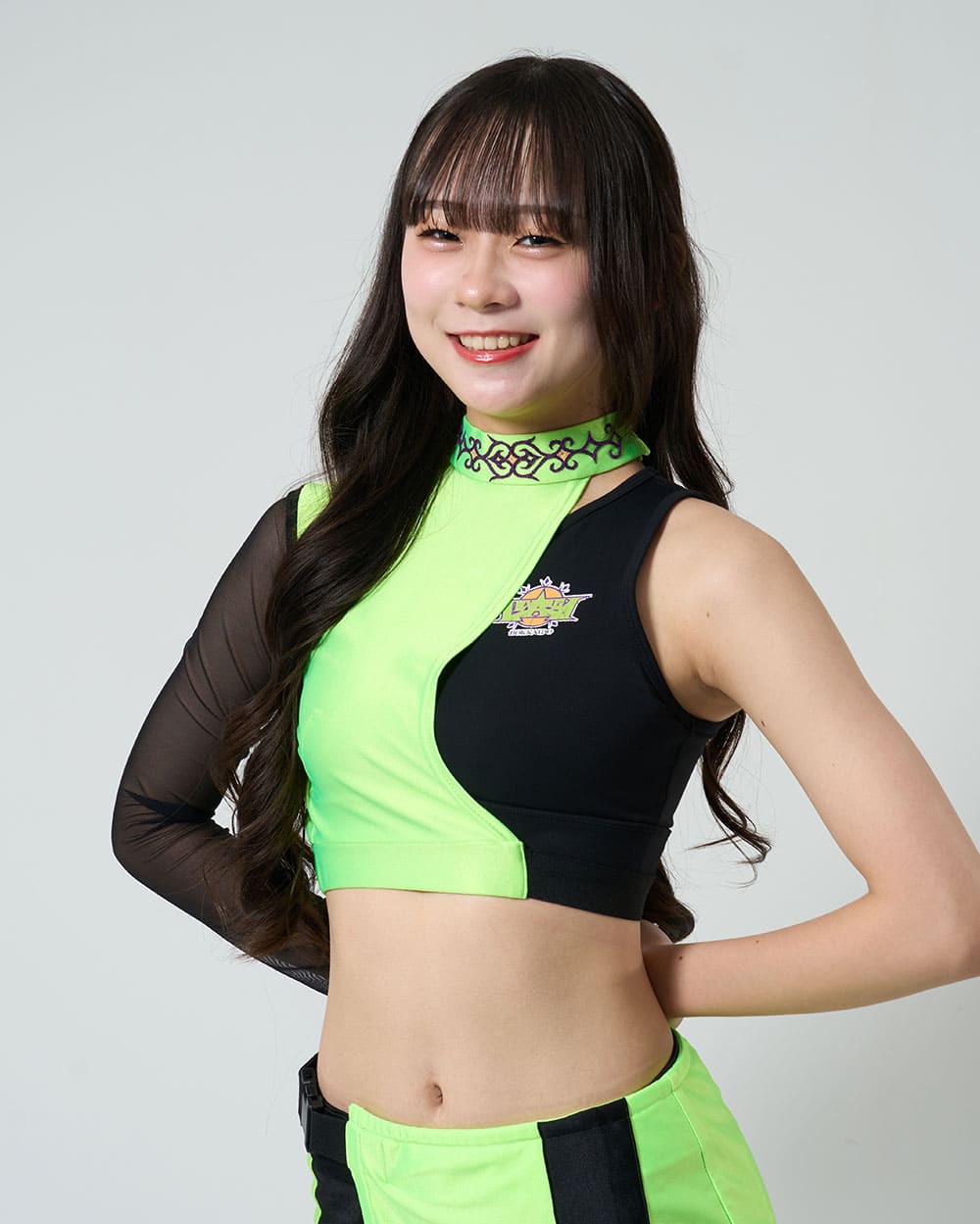| メッセージ | 今年からパシスタスピリッツのメンバーとして活動させていただくKURUMIです。 会場で皆さまに感動を届けられるよう全緑でパフォーマンスしていきますので、よろしくお願いいたします! |