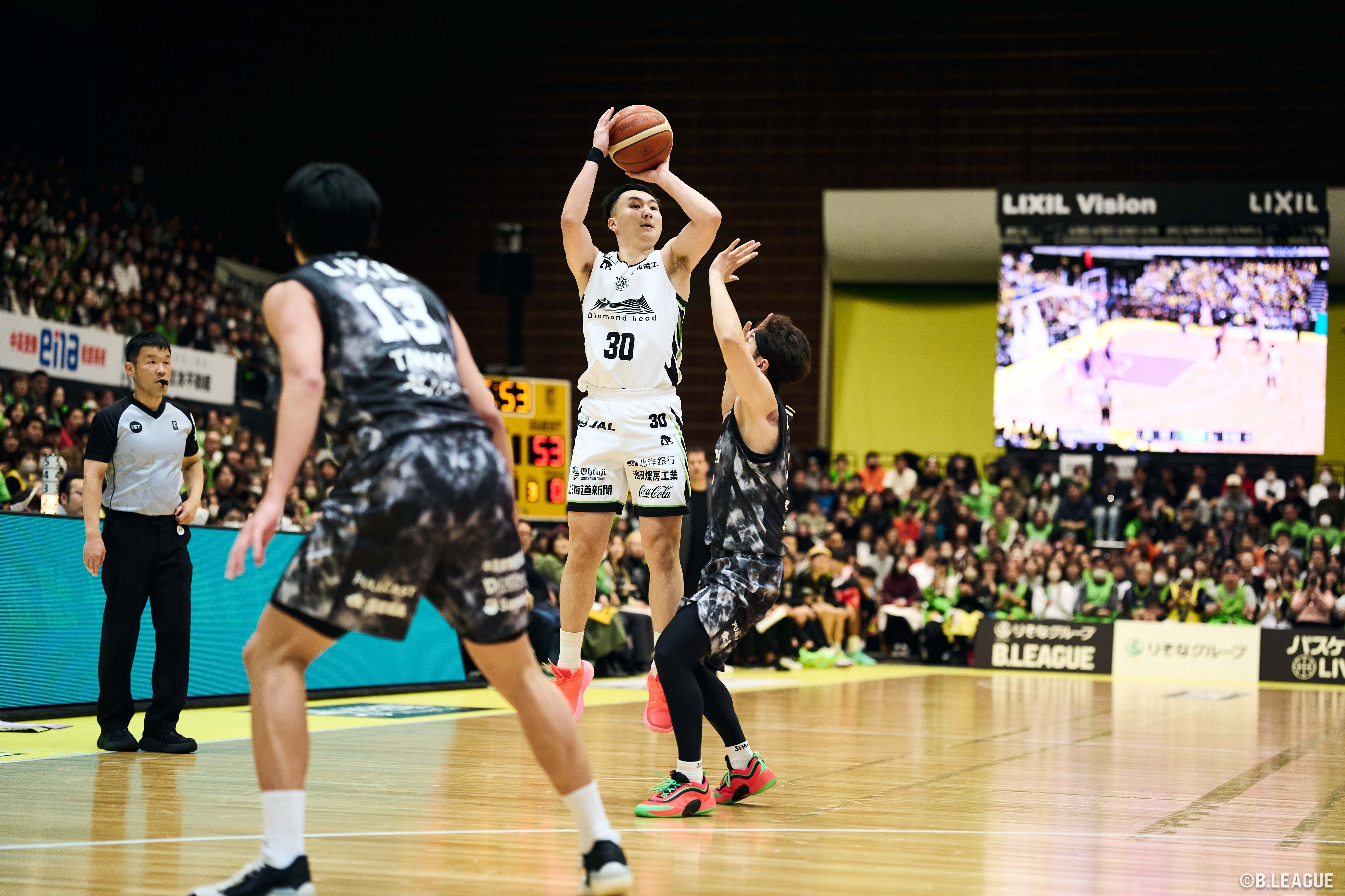 「ディフェンスとの駆け引きではありますが、自分が思っていた以上に出てこられたらドライブに切り替えますし、これまでやってきた中で、これくらいの間合いであれば打てるという距離はあるので、そのタイミングを見計らって打つようにしています。