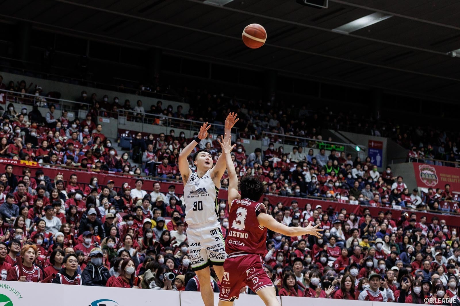 「1Qの入りがすごく悪かったので、なんとしても立て直さなければいけないと感じていた中、前半の最後で4点差まで迫り、後半の入りで一気に7点くらい差をつけることができたので、シュートが入ったことももちろんですが、良い勢いをつけることができたので、個人としてもすごく良かったのではないかと思います。